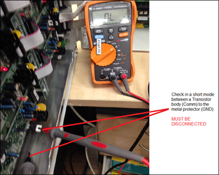 ตรวจสอบการลัดวงจรระหว่างตัวทรานซิสเตอร์กับตัวป้องกันโลหะตามที่แสดงในรูปที่ 3
